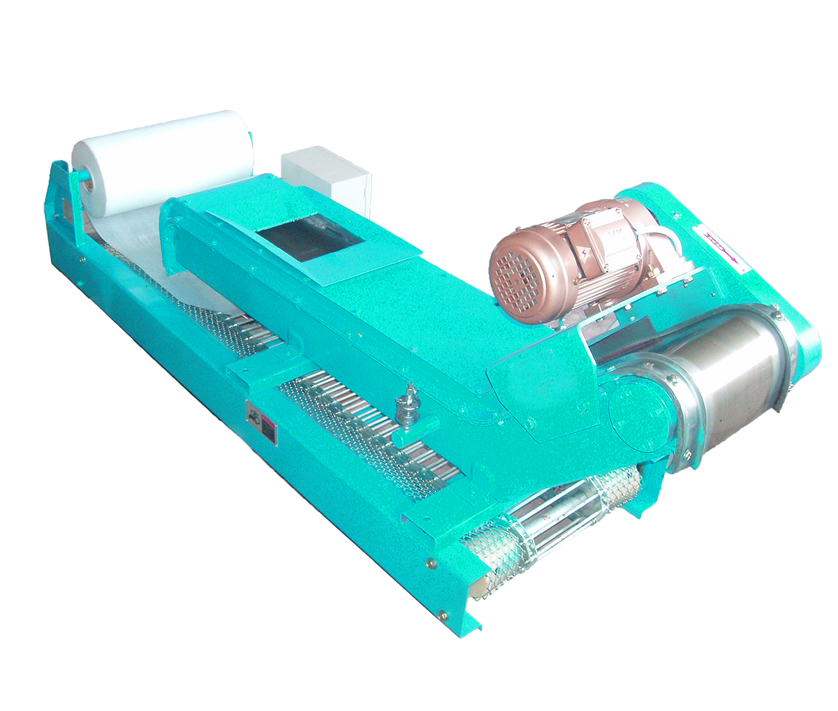 該裝置是由BXCP系列磁性排屑裝置和BXZG系列紙帶過濾機(jī)兩部分組合而成的。含有粉末狀吸磁雜質(zhì)和其它不吸磁雜質(zhì)的冷卻液,先經(jīng)過BXCP系列磁性排屑裝置將吸磁的雜質(zhì)清除,再經(jīng)過紙帶過濾機(jī)把冷卻液其它雜質(zhì)過濾干凈。該設(shè)備能使切削液、油實現(xiàn)二次過濾,過濾效果更理想。在磨削設(shè)備上加工吸磁工件時,可優(yōu)先考慮選用該型產(chǎn)品。