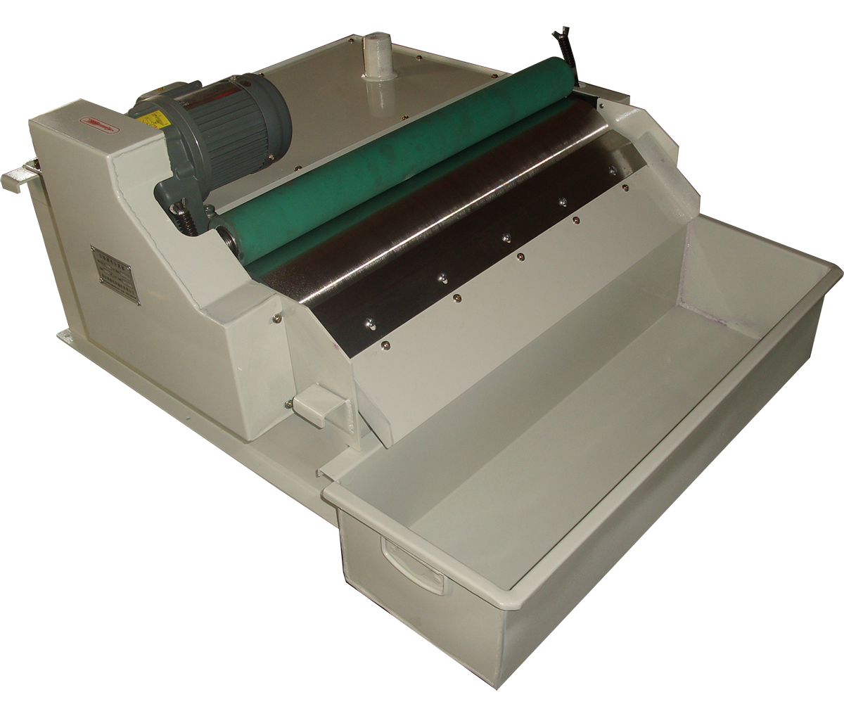BXCF系列磁性分離器由減速機(jī)、箱體、磁輥、膠輥及刮屑板等幾部分組成。減速機(jī)帶動(dòng)磁輥?zhàn)骰剞D(zhuǎn)運(yùn)動(dòng),含有粉末狀吸磁雜質(zhì)的冷卻液進(jìn)入箱體后,雜質(zhì)被吸附到磁輥上,經(jīng)過(guò)膠輥的碾壓,將雜質(zhì)中含有的液體擠出,再由刮屑板將雜質(zhì)與磁輥分離。